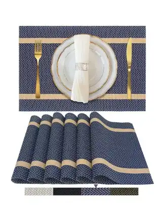 Blue Placemats Set of 6 - Washable Easy Clean Vinyl Placemats - Heat Resistant PVC Place Mats - Table Mats for Dining Table (Blue Gold Arrow Pattern) — Price History & Tracker | DeserTracker