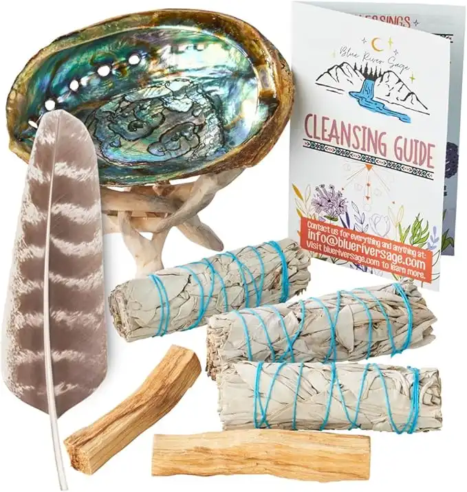 BLUE RIVER SAGE Home Cleansing & Smudging Kit with 3 White 2 Palo Santo, Abalone & Stand, Smudge Feather & Guide (Deluxe) — Price History & Tracker | DeserTracker