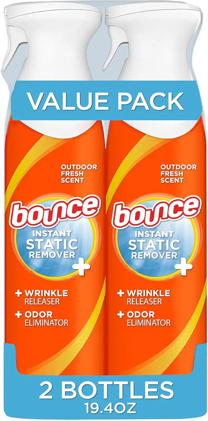 amazon.aeBounce 3-in-1 Anti Static Spray & Wrinkle Release - Odor Eliminator, Fabric Refresher & Dewrinkle Spray for Clothes, Anti-Wrinkle Spray for Clothing, Travel Size Wrinkle Releaser, 9.7 Fl Oz, Pack of 2