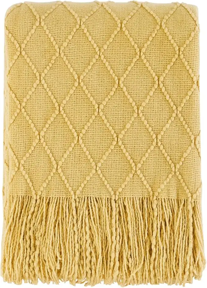 3. BOURINA Textured Solid Soft Sofa Throw Couch Cover Knitted Decorative Blanket,Mustard, 127x228cm