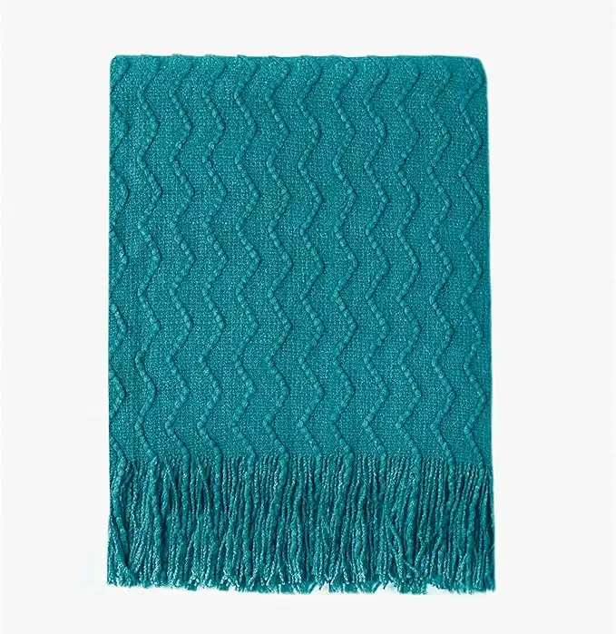 BOURINA Textured Solid Soft Sofa Throw Couch Cover Knitted Decorative Blanket,Teal, 127x228cm
