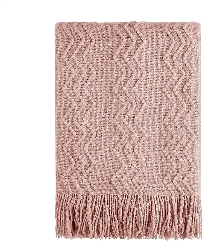 BOURINA Textured Solid Soft Sofa Throw Couch Cover Knitted Decorative Blanket,Pink, 127x228cm