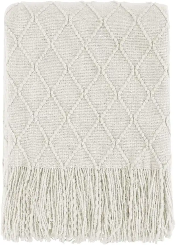 BOURINA Textured Solid Soft Sofa Throw Couch Cover Knitted Decorative Blanket,Beige, 127x228cm