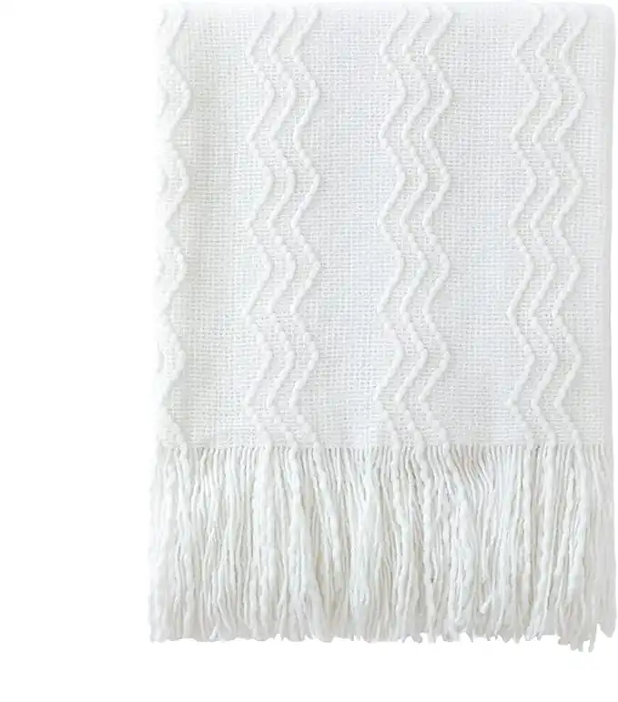 BOURINA Textured Solid Soft Sofa Throw Couch Cover Knitted Decorative Blanket,White, 127x228cm