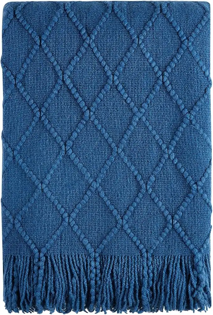 BOURINA Textured Solid Soft Sofa Throw Couch Cover Knitted Decorative Blanket,Navy, 127x228cm