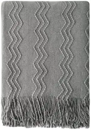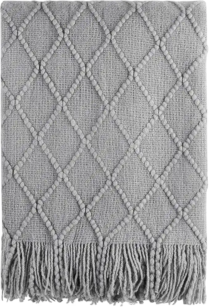 BOURINA Textured Solid Soft Sofa Throw Couch Cover Knitted Decorative Blanket,Light Grey, 152x203cm