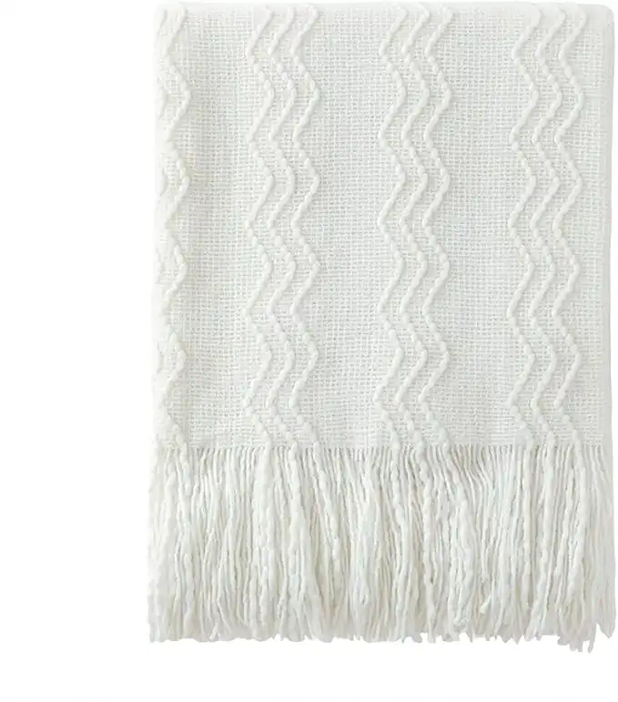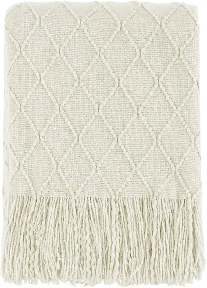 BOURINA Throw Blanket Textured Solid Soft Sofa Throw Couch Cover Knitted Decorative Blanket, 50" x 60" Off White
