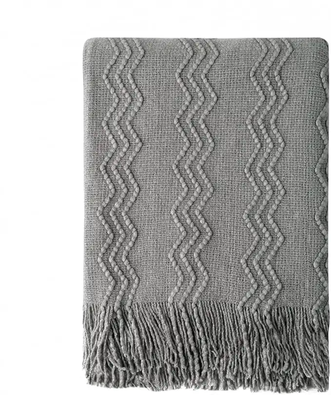 amazon.aeBOURINA Throw Blanket Textured Solid Soft Sofa Couch Decorative Knit Blanket, 50" x 60" Dark Grey
