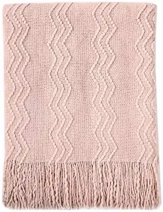 amazon.aeBOURINA Textured Solid Soft Sofa Throw Couch Cover Knitted Decorative Blanket, 50" x 60" 50"x60" Pink BORI-KnittedThrow-ZZT