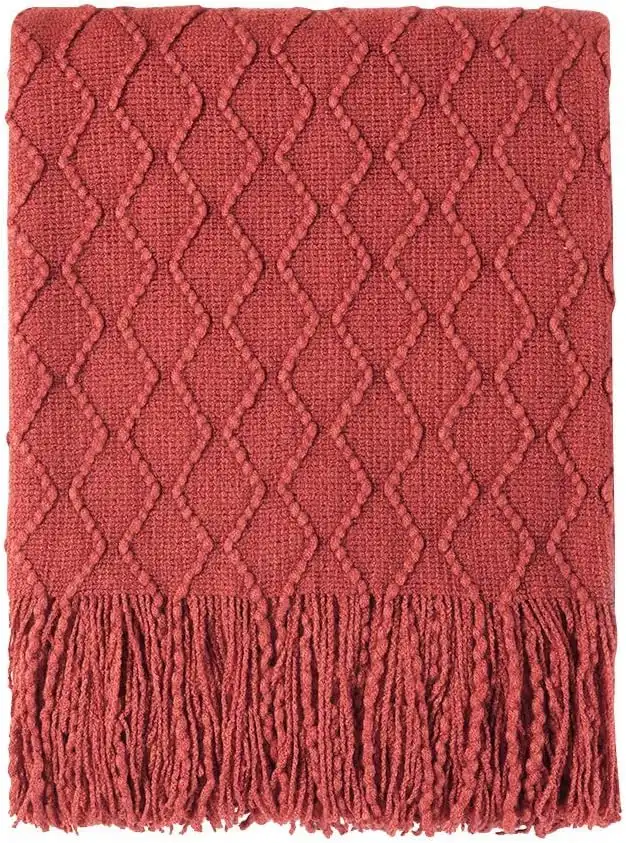 amazon.aeBOURINA Textured Solid Soft Sofa Throw Couch Cover Knitted Decorative Blanket, 50" x 60" 50"x60" Rust