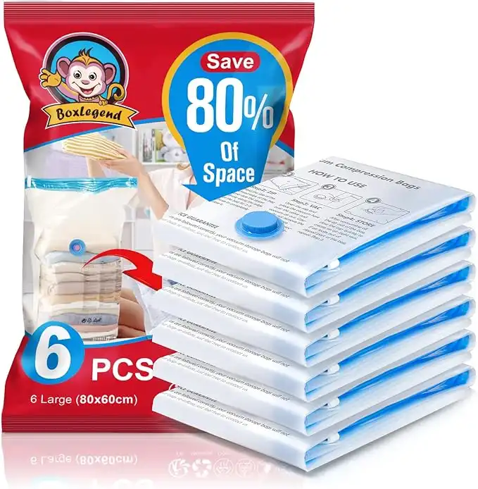 BoxLegend Vacuum Storage Bags 6 large 60x80cm Space Saving Double Zipper Seal Reusable Vacuum Compressiong Storage Bags for Duvets, Bedding, Suitcases, Pillows, Clothes, Quilts, Sweater, Comforters — Price History & Tracker | DeserTracker