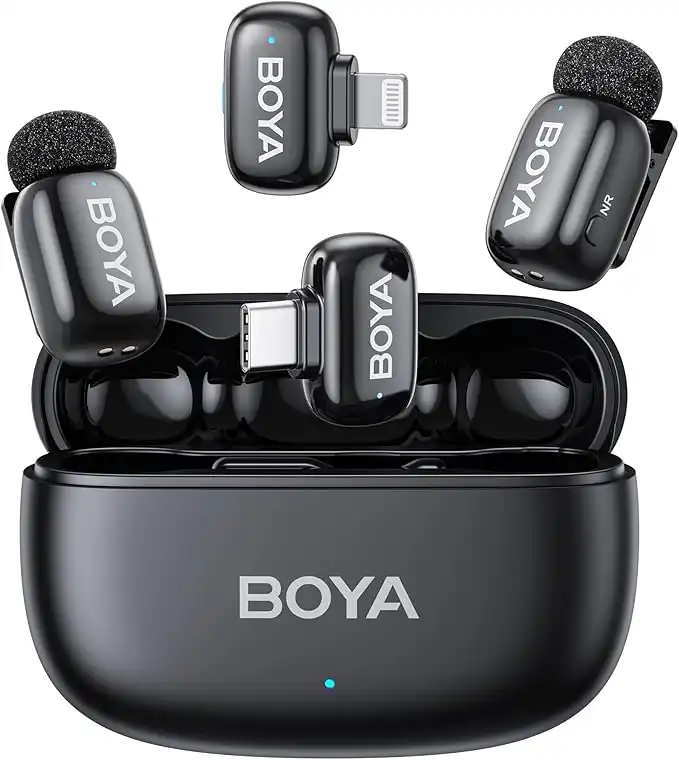 amazon.aeBoyamini Wireless Lavalier Microphone for iPhone/iPad Android Device with 2 Plugs&2 Ultra Mini Mics with 30H Usage, AI Voice Change, Lapel Microphone for Vlog, Streaming, TikTok, YouTube(Black)