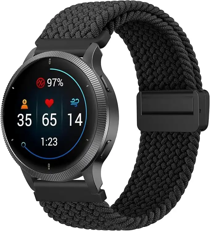Braided Stretchy Band Compatible with Garmin Vivoactive 4/Garmin Venu 2 Strap/Garmin Venu 3 Strap,Stretchy Nylon Band for Garmin Vivoactive 4/Venu 2/Forerunner 255