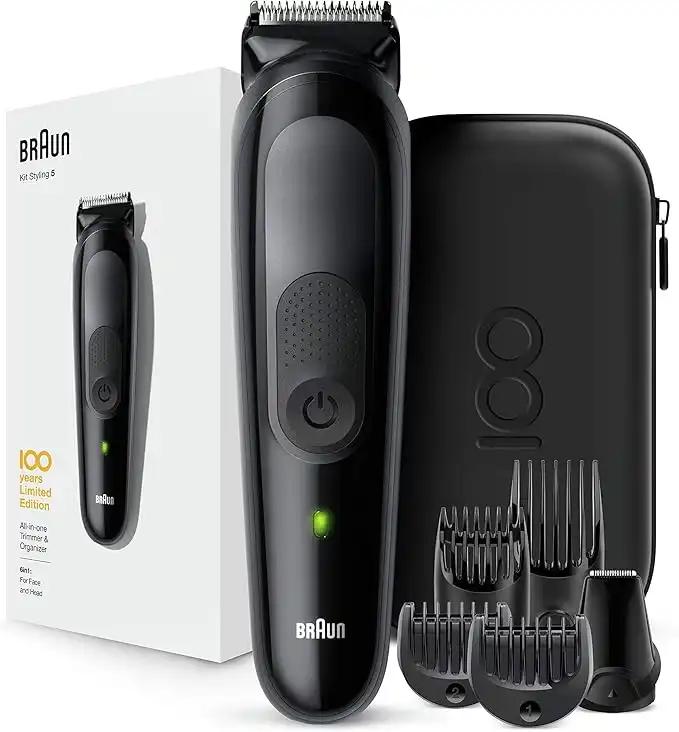 Braun Multi Grooming Kit MBMGK5, 100 Years Design Edition, 6-in-1 Men’s Trimmer kit including short and long combs, hair clippers and precision trimmer