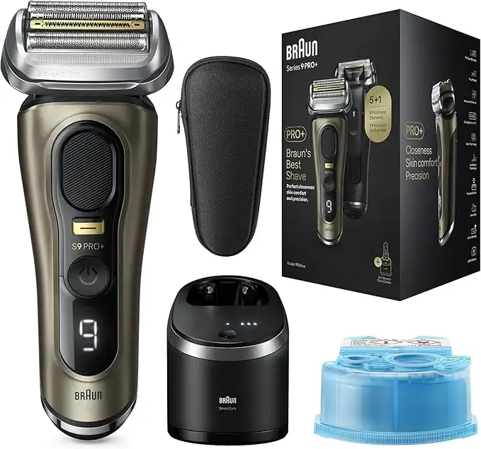Braun Series 9 Pro+ 9569cc Wet & Dry shaver with 6-in-1 SmartCare Center and Travel Case - Brass