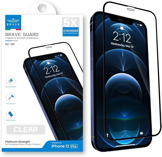 BRAVE iPhone 12 Pro Premium Clear Screen Protector 6.1 Inch Unbreakable with Easy Installation Tray, Bubble Free, Tempered Glass HD Clear, Anti-Scratch(Sc-12P) — Price History & Tracker | DeserTracker