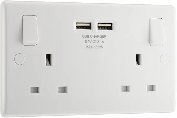 British General Bg electrical double switched 13 a fast charging power socket with two usb charging ports, 3.1 a, 5 v, 15.5 w, round edge, white — Price History & Tracker | DeserTracker
