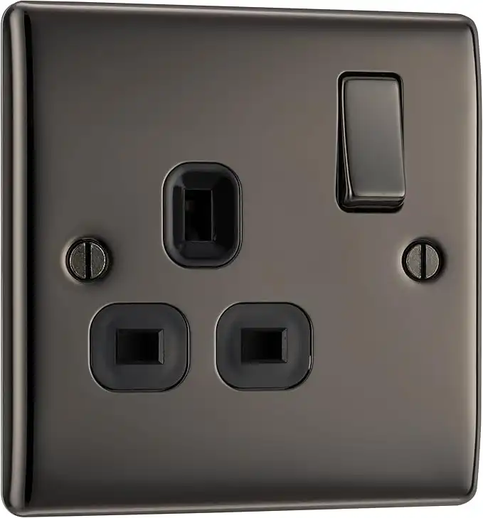British General BG Electrical Single Switched Power Socket, Black Nickel