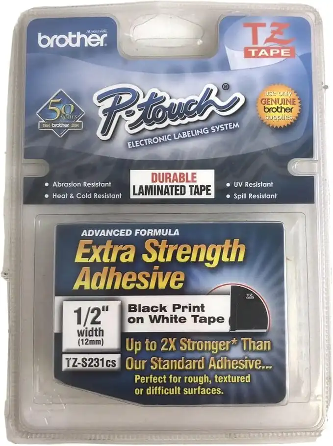 Brother Genuine P-touch TZe-S231 Tape, 1/2" (0.47") Wide Standard Laminated Tape,0.47" x 26.2 ft (12mm x 8mm)