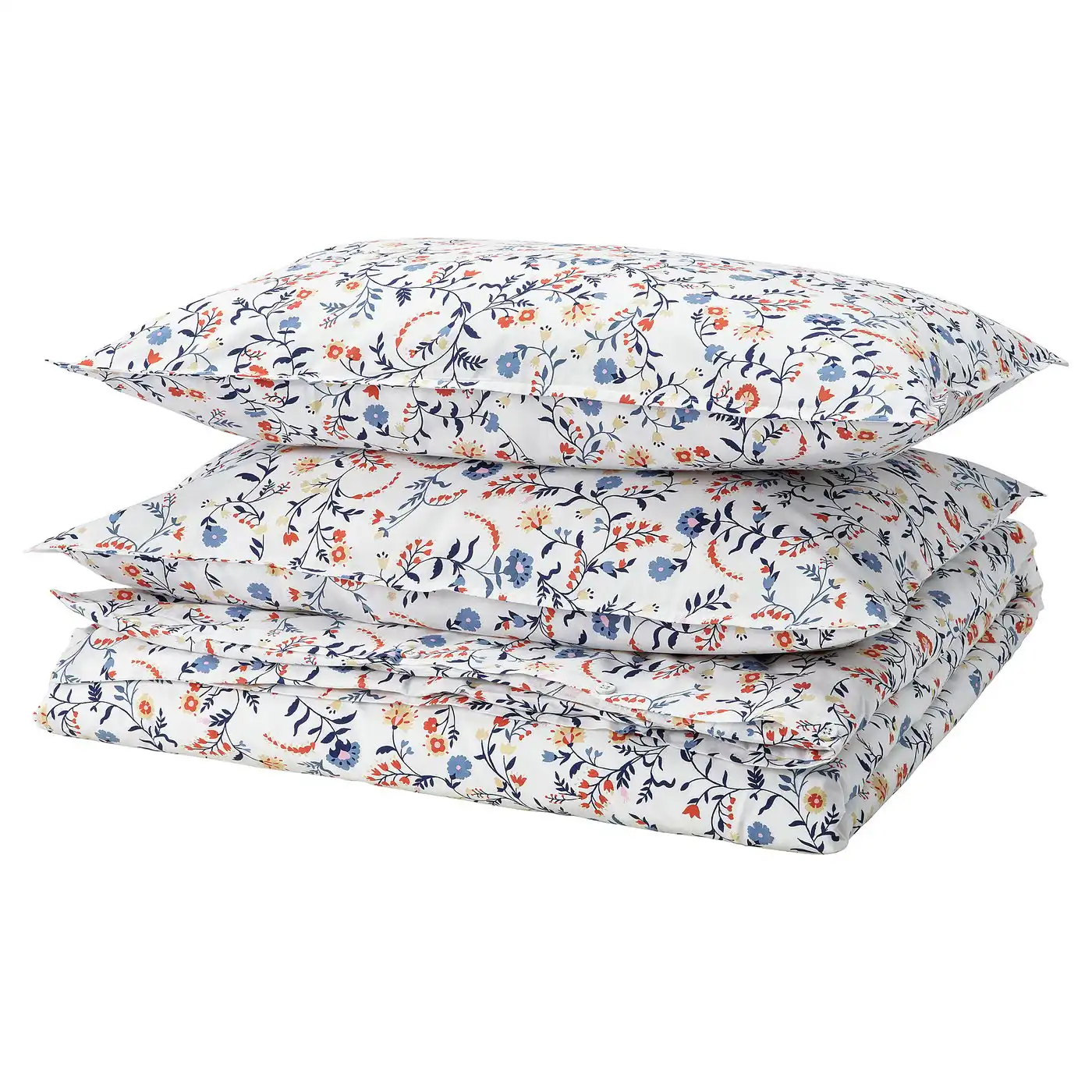 BRUDKRUSBÄR Duvet cover and 2 pillowcases - white multicolour/floral pattern 240x220/50x80 cm