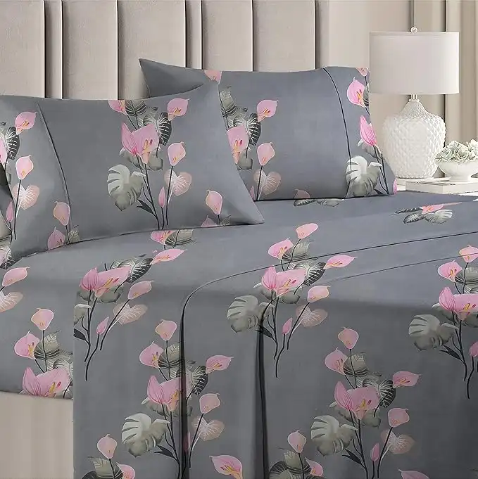 BSB HOME 100% Cotton Feel 160 TC Big Flower Printed Double Bedsheets with 2 King Size Pillow Cover, (90X90 Inches, 7x7.5 Feet, Pink & Grey Flower), 160tc, Under 200 tc — Price History & Tracker | DeserTracker