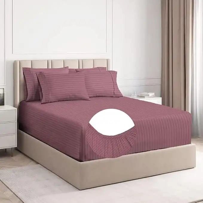 amazon.aeBSB HOME Cotton Solid/Stripes 220 TC Elasticated Fitted King Size Bedsheets with 2 Pillow Covers | Breathable | Size -78X72+10 Inches Deep Pocket Home-Hotels-Hospital-Guest House- Pinkish Red