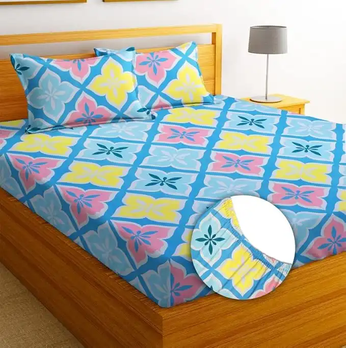 BSB HOME Premium 100% Microfiber Elastic Fitted Bedsheets with 2 Pillow Covers | Double Bed with All Around Elastic 180 TC Supersoft | for 78x72+10 Mattress (Floral, Pink & Blue) — Price History & Tracker | DeserTracker