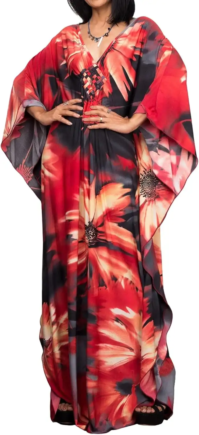 Bsubseach Women Print Beach Kaftan Dress Short Sleeve Plus Size Bathing Suit Cover Ups — Price History & Tracker | DeserTracker