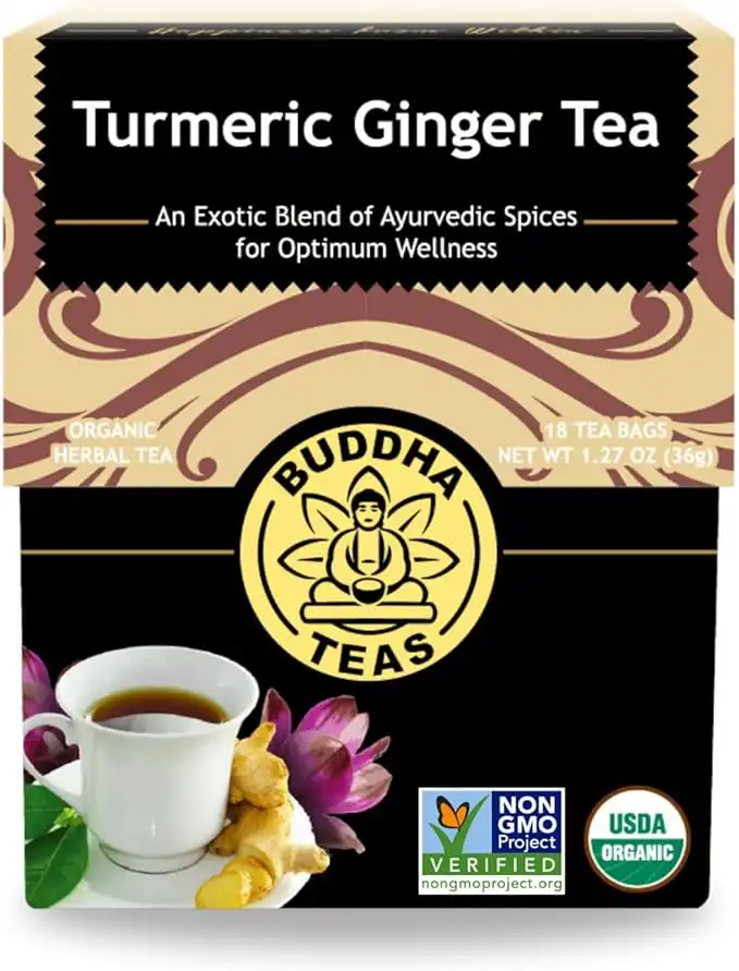 Buddha Teas Organic Turmeric Ginger 18 Bleach Free Tea Bags - Caffeine Free, Antioxidant, Antiviral, and Anti-Inflammatory, Immune Boosting Tea. Supports Digestion, No GMOs — Price History & Tracker | DeserTracker