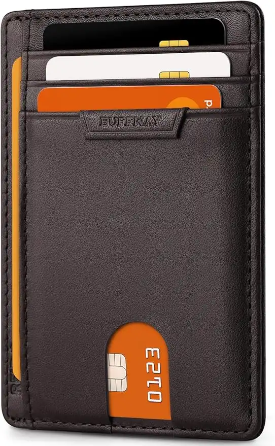 amazon.aeBuffway Mens Slim Wallet, Minimalist Thin Front Pocket Leather Credit Card Holder with RFID Blocking for Work Travel