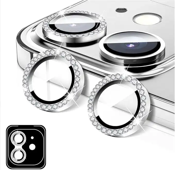amazon.comBull Camera Protection for iPhone 16/iPhone 16 Plus, Diamond Sticker for Camera Lens Cover, Tempered Glass Screen Protector, Individual Automatic Aligning Metal Rings (WHITE)