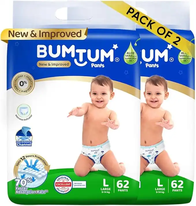 Bumtum Baby Diaper Pants, L (Size 4), 9-14 kg, Double Layer Leakage Protection Infused With Aloe Vera, Cottony Soft High Absorb Technology, 124 Diaper — Price History & Tracker | DeserTracker