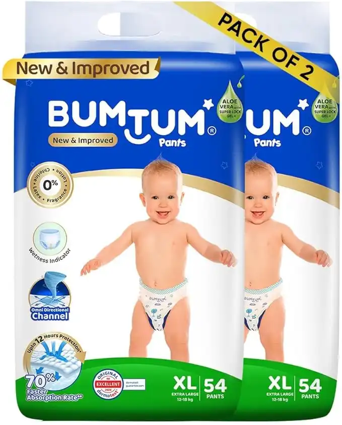 Bumtum Baby Diaper Pants, XL (Size 5), 12-18 kg, Double Layer Leakage Protection Infused With Aloe Vera, Cottony Soft High Absorb Technology, 108 Diaper — Price History & Tracker | DeserTracker