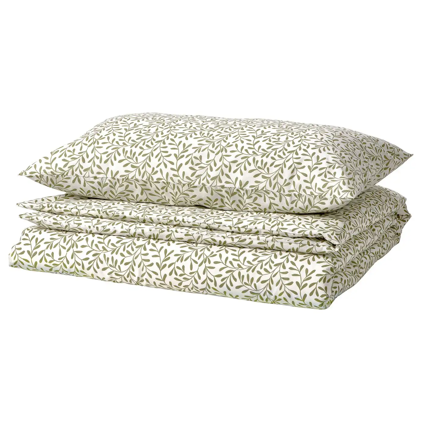 Buy SORGMANTEL Duvet cover and pillowcase, white/green, 150x200/50x80 cm - IKEA