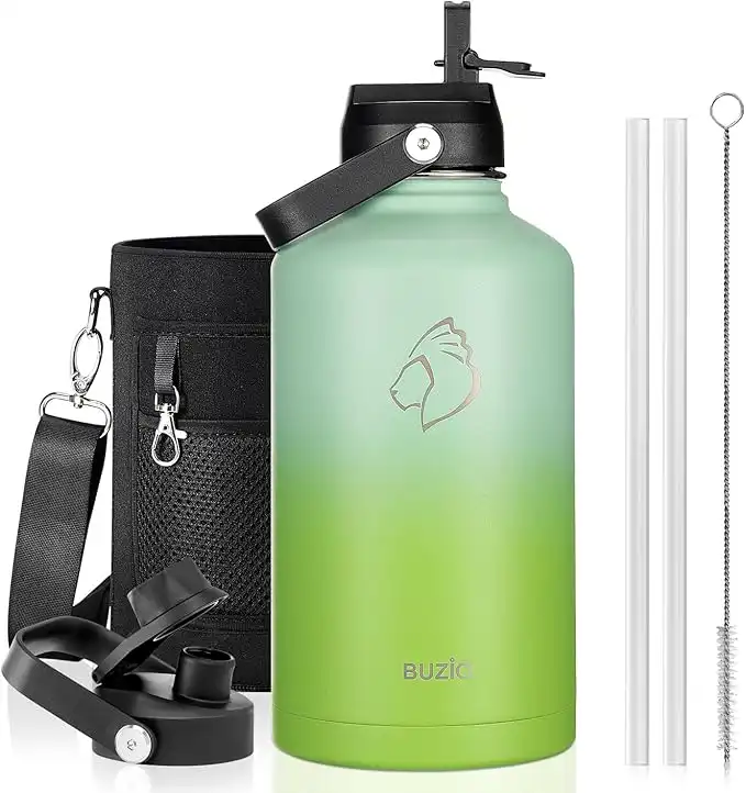 BUZIO 64oz Insulated Water Bottle, Triple Wall Stainless Steel (Cold for 48 Hrs) Leakproof Half gallon Jug/Flask with Straw Lid and Carry Bag for Sports Hiking, Camping, Gradient Green — Price History & Tracker | DeserTracker