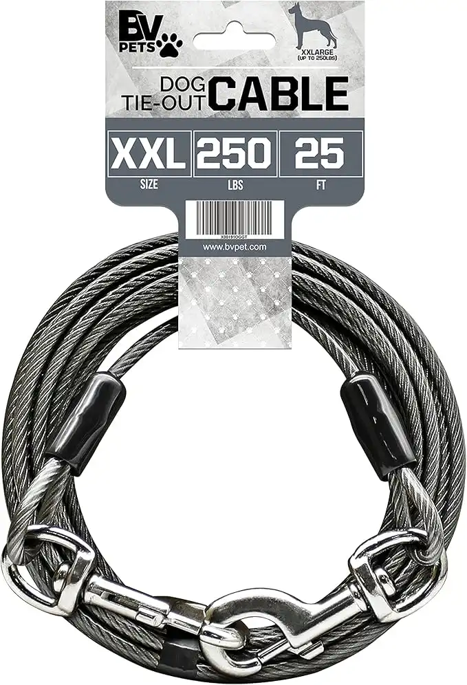 BV Dog Tie Out Cable 25 Feet - Dog Leads for Yard Heavy Duty - Up to 250 Pounds | Tie Out Cable for Dogs, Reflective Dog Lead, Dog Cable 25ft | Rust Free Dog Chain for Yard Outdoor (Gray) — Price History & Tracker | DeserTracker