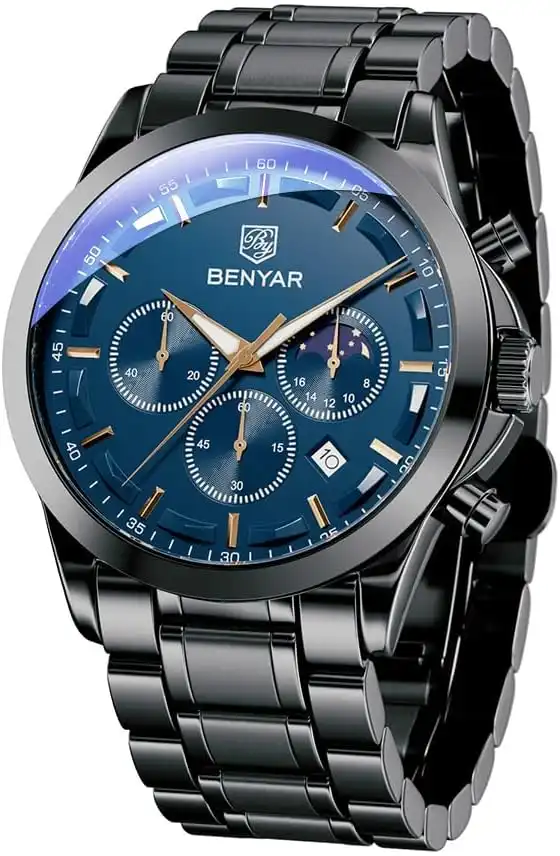 BY BENYAR Mens Watches BY BENYAR Chronograph Analog Quartz Movement Stylish Sports Designer Wrist Watch 30M Waterproof Elegant Gift for Men