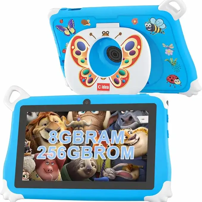 C idea Kids Tablet CM86 7-inch Android 15 Tablet for Kids, Wi-Fi and Bluetooth, 600x1024 Resolution Earl Education Toddler Tablets with HalalBaby Pre-Installed for Boy Girl (Blue)