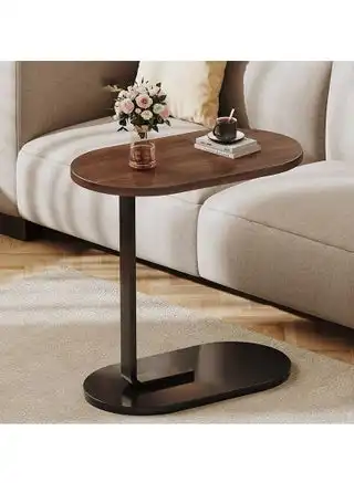 C Shaped Side Table with Metal Frame Service Table Coffee Bed Couch End Table Laptop Holder Table for Living Room Bedroom Bedside