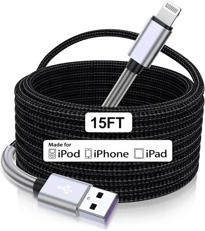 Cabepow 15 Ft Extra Long iPhone Charger Cord, [Apple MFi Certified] iPhone Charging Cable, 2.4A Nylon Braided Lightning Cable for iPhone 12/11 Pro Max/ 11 Pro/XS Max/XS/XR/X/ 8 Plus/ 8/7/ 6/5 — Price History & Tracker | DeserTracker