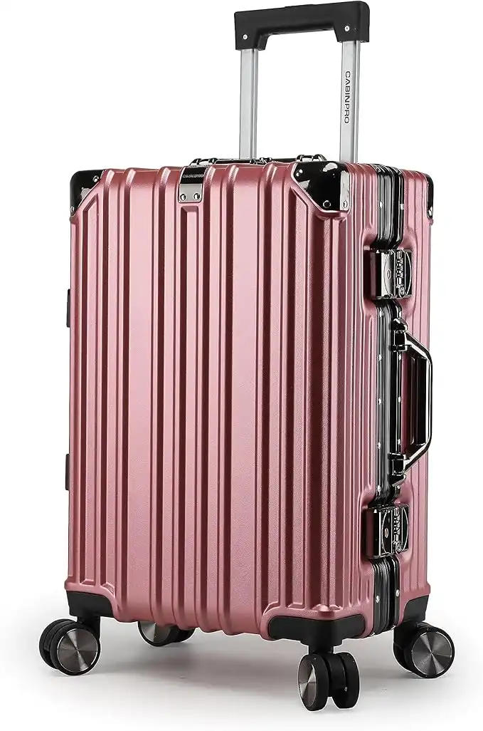 Cabin Pro Light Weight Aluminum Frame Fashion Trolley Luggage Polycarbonate Hard Case Carry on Suitcase with 4 Quite 360° Double Spinner wheels, CP001 (Carry-On 20-Inch, Rose Golden)