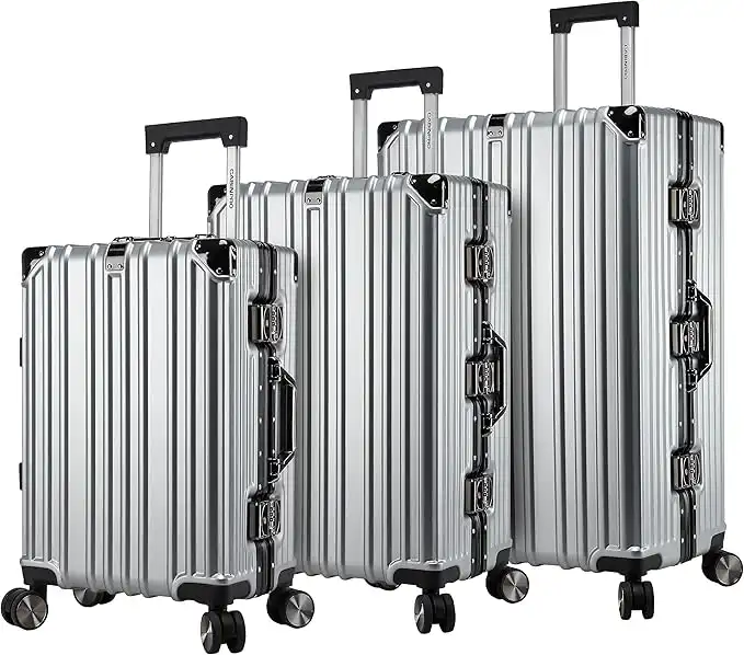 amazon.aeCabin Pro Light Weight Aluminum Frame Fashion Trolley Luggage Set Polycarbonate Hard Shell Suitcase with 4 Quite 360° Double spinner wheels, CP001 (Set of 3, Silver)