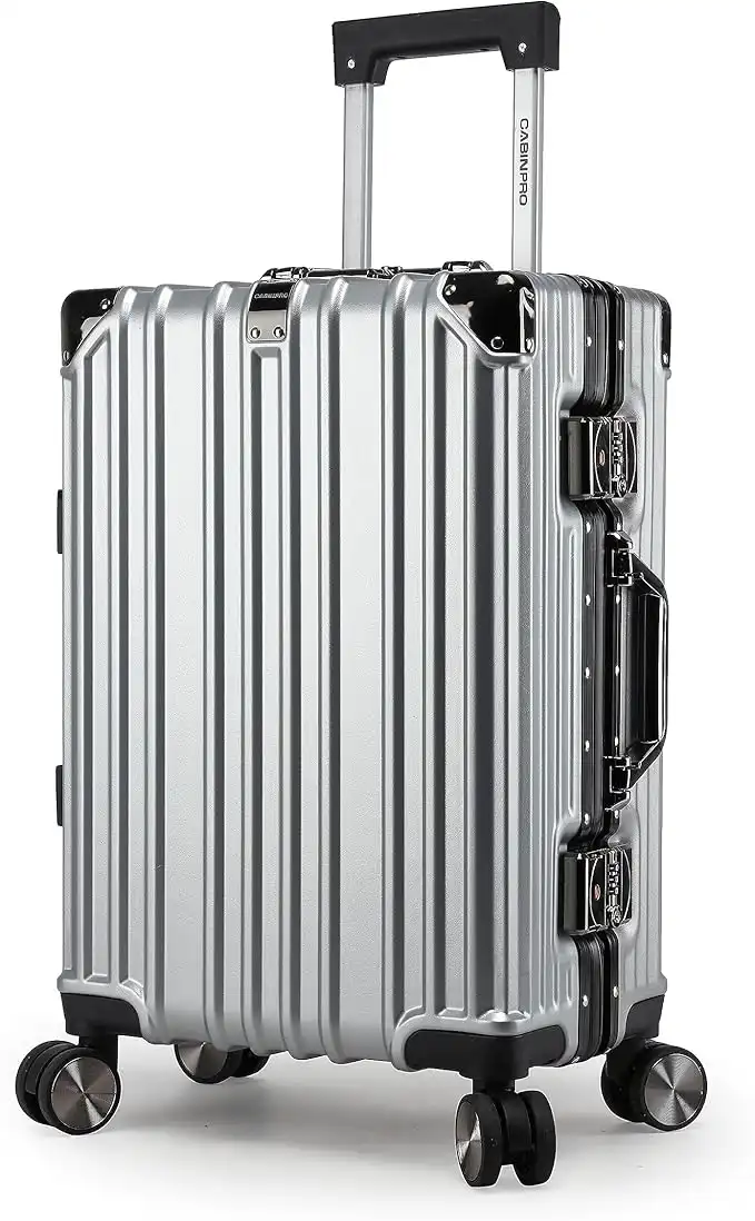 amazon.aeCabin Pro Light Weight Aluminum Frame Fashion Trolley Luggage Polycarbonate Hard Case Carry on Suitcase with 4 Quite 360° Double Spinner wheels, CP001 (Carry-On 20-Inch, Silver)