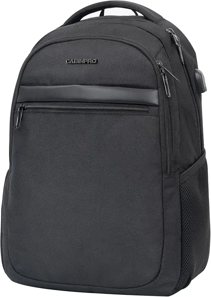Cabinpro Premium Backpack Water Resistant Daypack with Built-in USB port for Men and Women on Casual, Business, School, College, Travel, CP014 (Black)