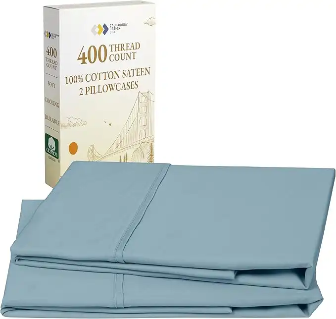 California Design Den 100% Cotton Pillowcases, Pillow Case Set of 2, Fits King Size Pillows, Luxury 400 Thread Count Sateen Pillowcases, Match with Our 400 Thread Count Sheets (Sky Blue)