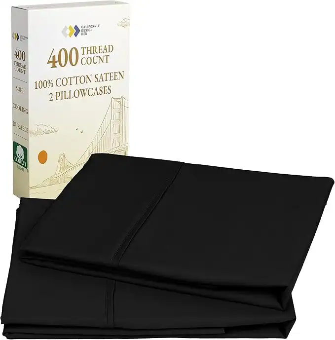 California Design Den 100% Cotton Pillowcases, Pillow Case Set of 2, Fits King Size Pillows, Luxury 400 Thread Count Sateen Pillowcases, Match with Our 400 Thread Count Sheets (Black)