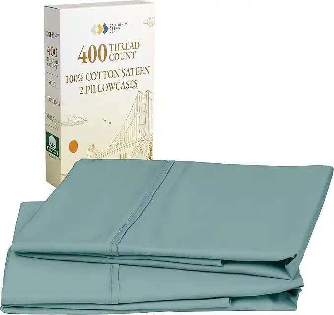 California Design Den Soft King Size Pillow Cases, 100% Cotton Set of 2, Cool & Smooth, 400 Thread Count, Sateen Pillow Cases (Teal)