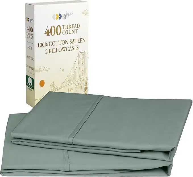 California Design Den 100% Cotton Pillowcases, Pillow Case Set of 2, Fits King Size Pillows, Luxury 400 Thread Count Sateen Pillowcases, Match with Our 400 Thread Count Sheets (Sage Green)