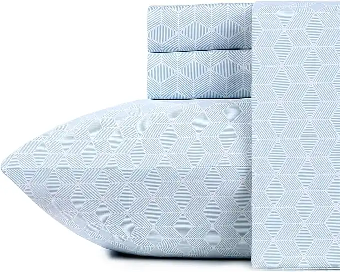 amazon.aeCalifornia Design Den - Luxury Queen Size Sheets 100% Cotton, 600 Thread Count Sateen, Deep Pocket, Snug Fit, Soft & Crisp Printed Bedding Sheets & Pillowcases, 4 Pc Set (Queen, Classic Stripe - Blue)