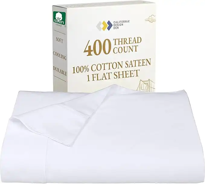 amazon.aeCalifornia Design Den Twin Size Flat Sheet, Soft 100% Cotton Sheet, 400 Thread Count Sateen, Cooling & Breathable Bed Sheets, White Top Sheet, Twin Sheets, Single Twin Flat Sheet Only (Bright White)